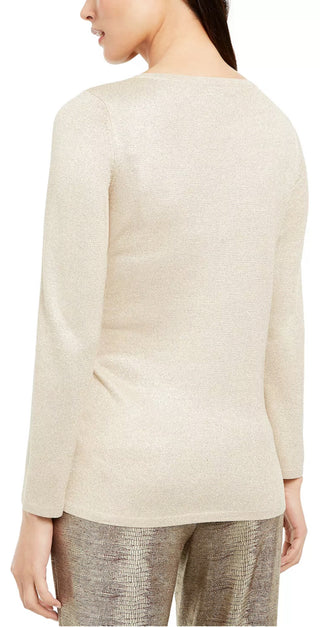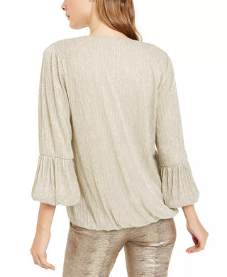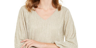 Blusa feminina Alfani com bolhas metálicas e brilhos dourados, tamanho pequeno G
