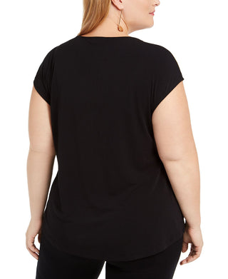 Camiseta Alfani Feminina Colorblock Metálica Preta Tamanho 2X