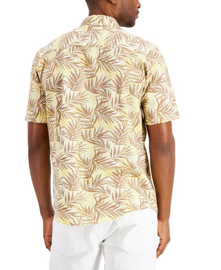 Camisa masculina Alfani Barello Leaf Knit Back manga curta amarela tamanho médio