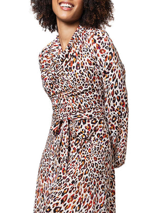 Vestido feminino Leota Mallory com estampa animal e manga comprida, marrom, tamanho médio
