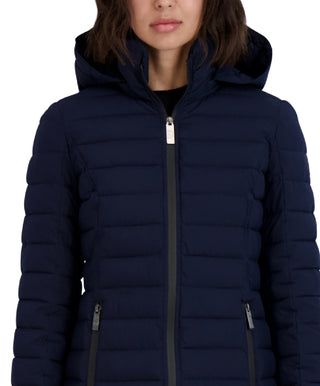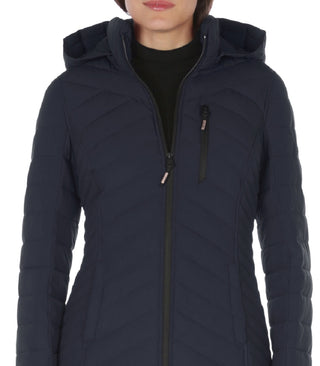 Casaco acolchoado com capuz Nautica feminino, azul, tamanho grande
