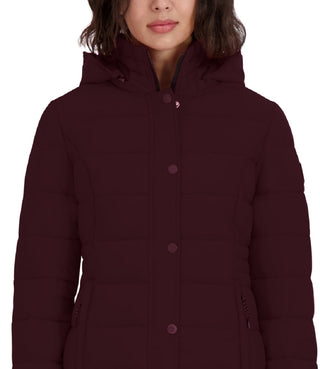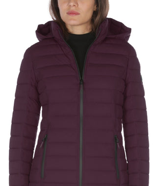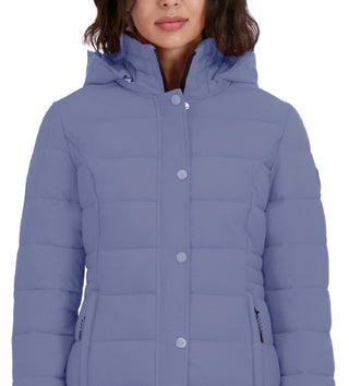Casaco acolchoado com capuz Nautica feminino, elástico e dobrável, roxo, tamanho X-S