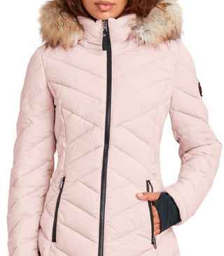 Casaco acolchoado elástico com capuz e acabamento em pele sintética Nautica feminino, rosa, tamanho XX-G