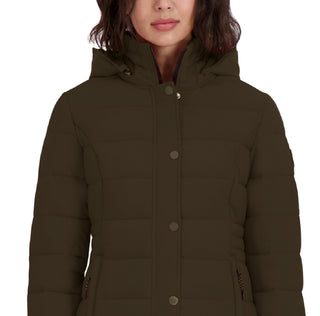 Casaco acolchoado com capuz Nautica feminino, elástico e dobrável, verde, tamanho X-S
