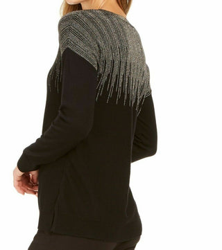 Suéter Alfani Feminino com Detalhes Metálicos e Bainha Ventilada em Preto Regular e Petite Tamanho Petite Pequeno