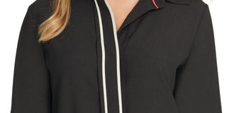 Blusa feminina DKNY com carcela contrastante, preta, tamanho extragrande