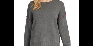 Suéter feminino DKNY de malha dupla com acabamento contrastante, cinza, tamanho grande