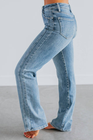 Risen - Calça Jeans Vintage de Cintura Média e Perna Reta