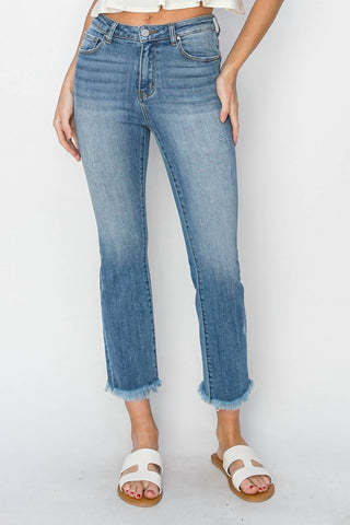 Risen - Calça jeans cintura média com bainha degrau até o tornozelo