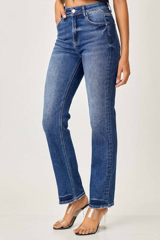 Risen - Calça Jeans Reta Cintura Média e Barra Crua