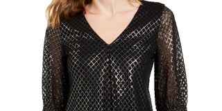 Blusa feminina Alfani com estampa metálica e manga sino, preta, tamanho 1X