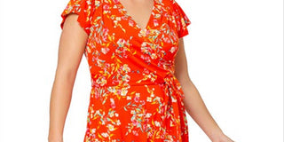 Vestido envelope falso de malha floral Monique da Leota feminino, laranja, tamanho 2X