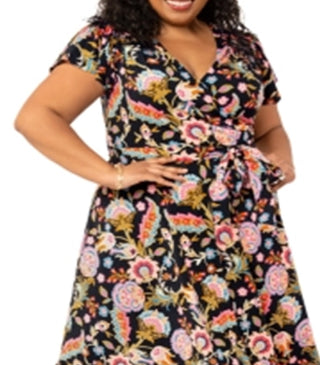 Vestido midi envelope Monique da Leota para mulheres, preto, tamanho 3X