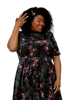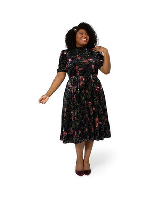 Vestido midi de veludo floral Miranda da Leota feminino, preto, tamanho 2X