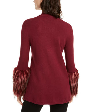 Suéter feminino Alfani com gola falsa e punhos de pele sintética, tamanho vinho, pequeno, médio