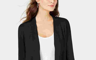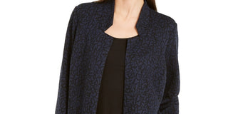 Jaqueta feminina Alfani com jacquard aberto na frente, preta, tamanho pequeno e pequeno