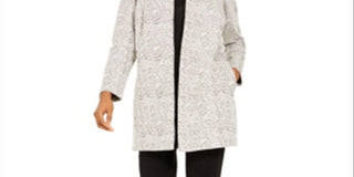 Jaqueta feminina Alfani com jacquard aberto na frente, cinza, tamanho pequeno grande