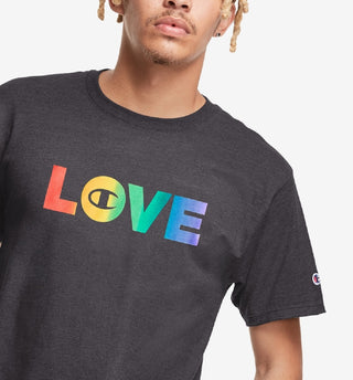 Camiseta gráfica Champion masculina Rainbow Love Jersey cinza, tamanho médio