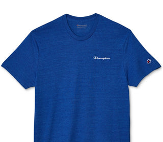 Camiseta Champion Powerblend Slim Fit Masculina com Logotipo Bordado Azul Tamanho Grande