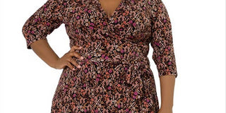 Vestido envelope falso perfeito para mulheres Leota, marrom, tamanho 3X
