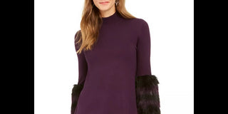 Alfani Suéter feminino pequeno com acabamento em pele sintética, roxo, tamanho médio
