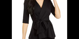 Top Alfani Feminino Petite com Manga Cotovelo e Envoltório Sintético, Preto, Tamanho Petite G