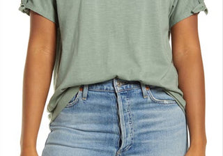 Camiseta Caslon(R) com manga amarrada, verde Dune, tamanho X-S