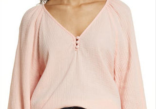 Blusa Caslon de tamanho pequeno com manga raglan e seersucker em chita rosa