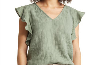 Blusa Caslon Verde Dune com decote em V e mangas franzidas, tamanho extrapequeno