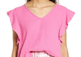 Blusa Caslon com decote em V e mangas com babados, tamanho médio, na cor rosa Ibis - Nordstrom
