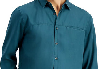 Camisa masculina de gola regular com botões INC, verde, tamanho XS