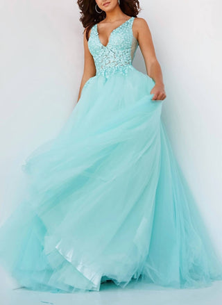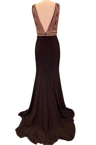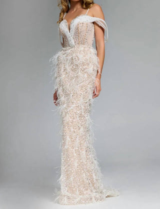 Jovani - Vestido decotado com penas e enfeites deslumbrantes
