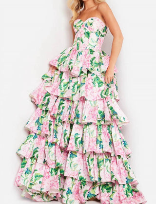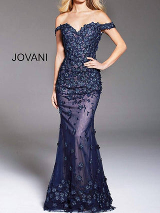 Jovani - Vestido de noite com ombros à mostra e detalhes florais