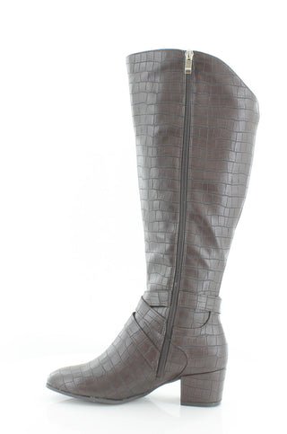 LifeStride Botas femininas de salto alto com zíper e bico redondo antiderrapante, estilo panturrilha larga, marrom, tamanho 9,5