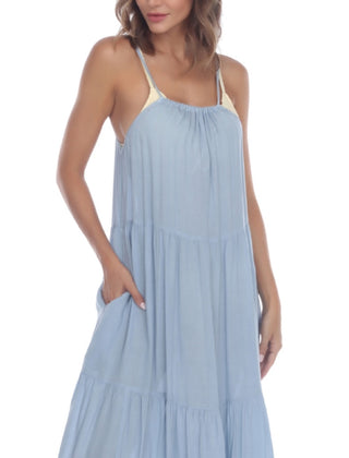 Vestido de banho feminino Raviya com camadas MIDI, azul, tamanho pequeno