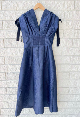 Vestido midi franzido Suzie Sea New York azul marinho