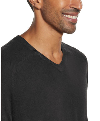 Suéter masculino impermeável com decote em V e toque suave, preto, tamanho pequeno