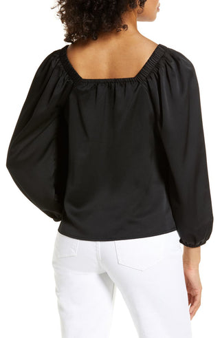 Blusa de malha halógena preta tamanho pequeno com ombros à mostra
