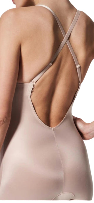 Spanx - Bodysuit com decote profundo nas costas e comprimento até o meio da coxa