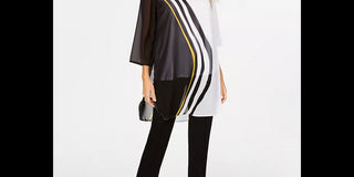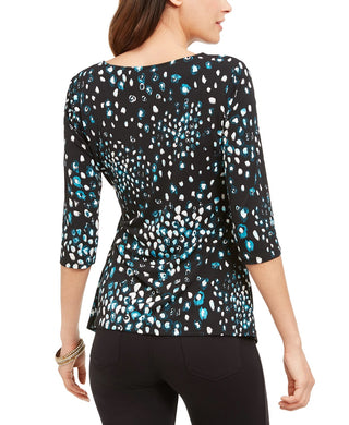 Top Alfani Feminino Petite Estampado com Bainha em V Preto Tamanho P