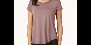 Camiseta Alfani Feminina Petite com Acabamento em Cetim, Manga Longa e Curta, Roxo Figo, PS/M