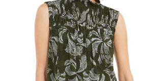 Blusa feminina Alfani Petite Smocked com gola alta, verde, tamanho PL