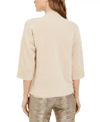 Alfani Suéter Feminino Petite Scattered Faux-Pearl Bege Tamanho PL