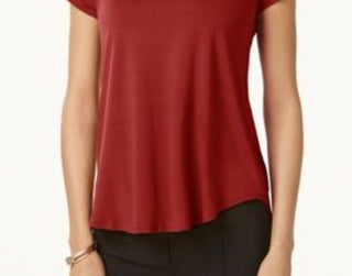 Camiseta Alfani Feminina Petite Satin-Trim High-Low Vermelha Escura Tamanho Médio