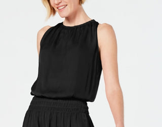 Top Alfani Feminino Petite Solid com Decote Redondo Preto Tamanho Petite Pequeno