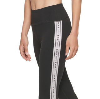 Leggings femininas DKNY Cropped Metallic-Contrast 7/8, pretas, tamanho médio