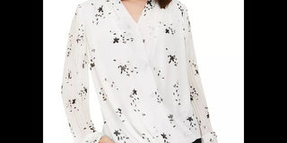Blusa feminina Alfani com mangas plissadas e decote em V, floral, branca, tamanho extragrande