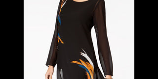 Túnica Alfani Feminina de Chiffon com Estampa Colocada, Preta, Tamanho Pequeno GG