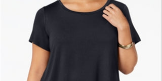 Blusa casual feminina Alfani Plus Hi Low manga curta preta tamanho 0X