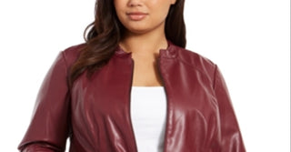 Jaqueta de couro sintético Alfani Plus para mulheres, tamanho 0X, vinho